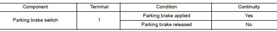 NO >> Replace parking brake switch. Refer to PB-7, "Exploded View".