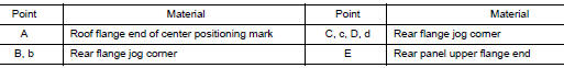 mark has been placed on each part of the body to indicate the vehicle center. When repairing parts damaged by an accident which might affect the vehicle frame (members, pillars, etc.), more accurate and effective repair will be possible by using these marks together with body alignment specifications.