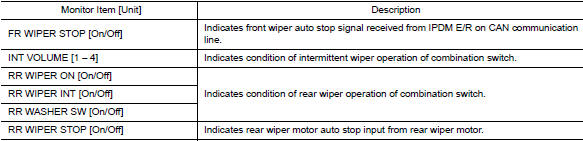 BCM judges the wiper intermittent dial 1 - 4 by the status of INT VOLUME 1, 2, and 3 switches.